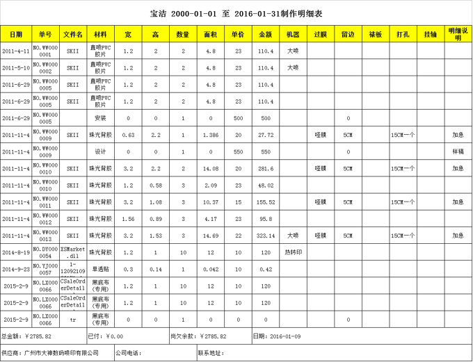 ◇ 只要员工通过快速下单的功能(具体可以点击广告数码喷印行业软件常用开单方式查看具有的下单功能)下单之后,到了对账时间,打开软件,点击客户月结对账处理,你需要的账单就已经出来了。完全告别了还需要自己花时间一张单一张单去整理对账的时代。要表格有表格要打印有打印